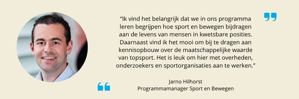 Dit project onderzoekt in 3 wijken welke barrières bewoners ervaren om te gaan sporten en bewegen en hoe die kunnen worden weggenomen. 'Soms is geld het probleem, maar net zo vaak speelt er iets anders: gebrek aan tijd of prioriteit, schaamte, onzekerheid', aldus Kirsten Verkooijen.