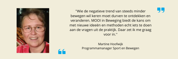 | Wil je op de hoogte blijven van alle updates rondom MOOI in Beweging? Op onze LinkedIn-pagina delen we subsidiemogelijkheden, belangrijke ontwikkelingen, praktijkvoorbeelden en onderzoek dat wij financieren. |