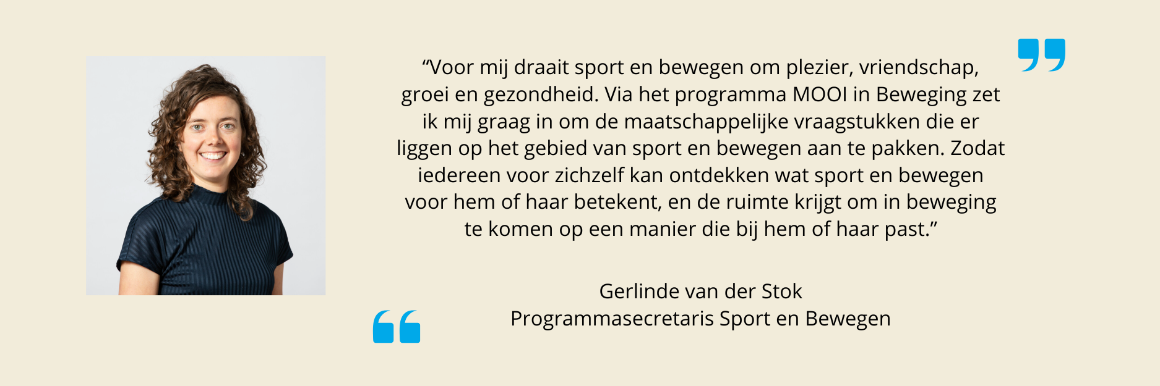 | Wil je op de hoogte blijven van alle updates rondom MOOI in Beweging? Op onze LinkedIn-pagina delen we subsidiemogelijkheden, belangrijke ontwikkelingen, praktijkvoorbeelden en onderzoek dat wij financieren. |
